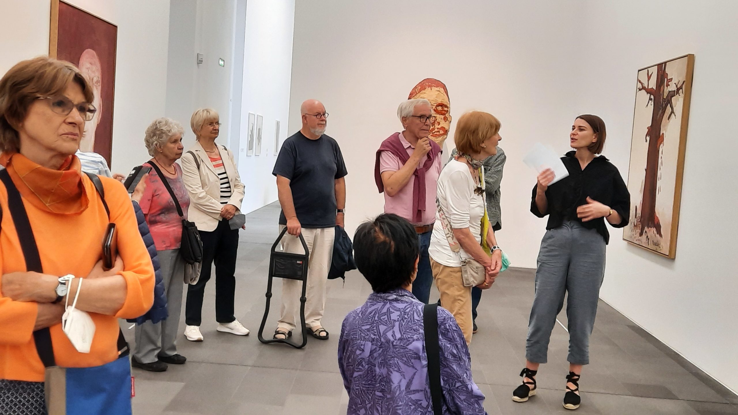 Im Juli lud der HVV ein zu einem Besuch der Küppersmühle in Duisburg. Gezeigt wurde die „normale“ Ausstellung, die Sonderausstellung befand sich gerade erst im Aufbau. Zunächst konnten wir einen Blick auf den Erweiterungsbau werfen, der von weitem gar nicht auffiel, von nahem konnte man aber die aufwendig hergestellten Ziegel sehen. Im Zuge des Erweiterungbaus wurden auch die historischen Silos erschlossen und in den Bau integriert. Früher war die Küppersmühle der sogenannte Brotkorb von Duisburg und Umgebung. Weil das nicht mehr nötig ist, da das Getreide heute weitestgehend aus anderen Ländern eingeführt wird, wurde die Küppersmühle daher von den Besitzern als Museum für die moderne Kunst umgewandelt. Innen fiel zunächst das einzigartige Treppenhaus auf, das aussah, als wäre es aus Holz. Wunderschön geschwungene Treppen führten in die 3 Etagen, früher 6! Jeweils zwei Etagen wurden zusammengefasst. Der Blick nach oben ließ an eine Skulptur denken. In den großen, hellen Ausstellungsräumen sahen wir Werke der modernen Kunst, u. a. von Georg Baselitz, Anselm Kiefer, Markus Lüpertz, Gerhard Richter und von vielen anderen Künstlern. Die inszenierten Waldphotografien von Anna und Bernhard Blume waren außergewöhnlich. – Voll der schönen kulturellen Eindrücke begaben wir uns zu einer geruhsamen zweistündigen Fahrt durch Deutschlands größten Binnenhafen, nämlich den Duisburger Hafen. Die Sonne schien, wir schipperten durch die verschiedenen Hafenbecken, an Frachtkähnen und Lagerhäusern vorbei, ein Stück über den Rhein, die Ruhr und die vielen Seitenarme. Es war ein rundum gelungener Tag. – Vielleicht besuchen wir die Küppersmühle noch einmal zu einer Wechselausstellung und/oder das Museum der Deutschen Binnenschifffahrt in Duisburg mit einem anschließenden Besuch des Duisburger Innenhafens mit seinen Restaurant-Terrassen.