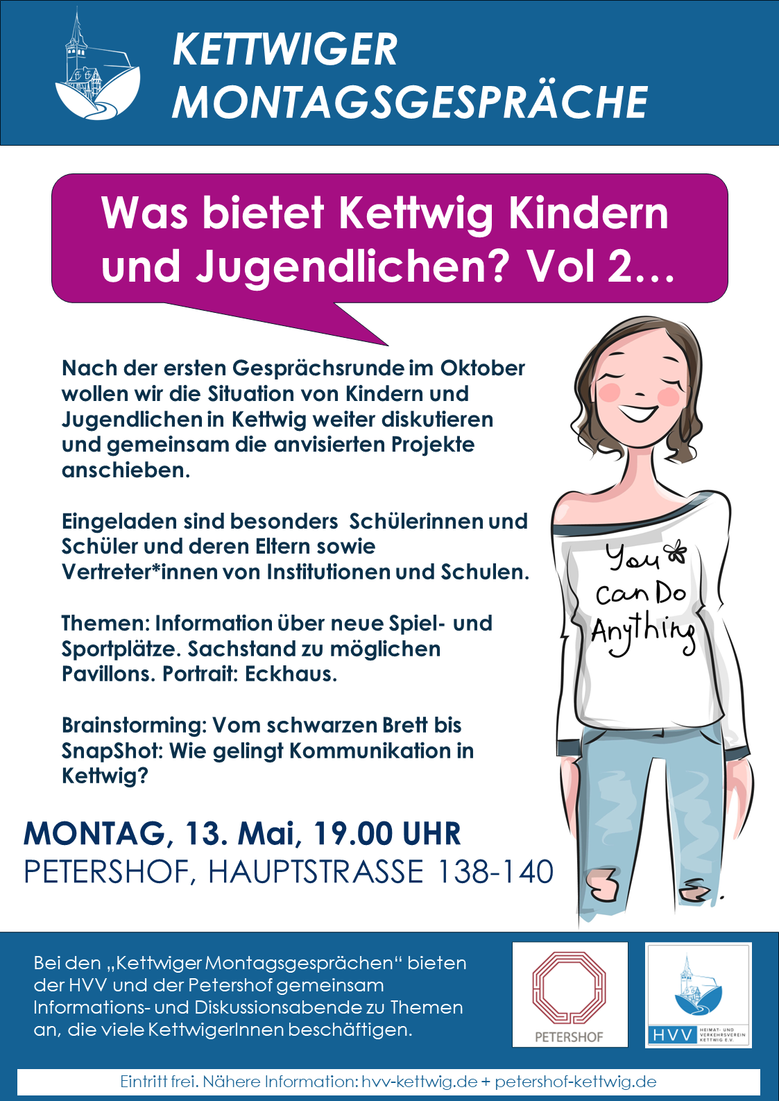 „Kettwiger Montagsgespräche“ statt, die Themen aufgreifen, die viele Bürgerinnen und Bürger beschäftigen. Diesmal geht es zum zweiten Mal um die Frage „Was bietet Kettwig Kindern und Jugendlichen?“