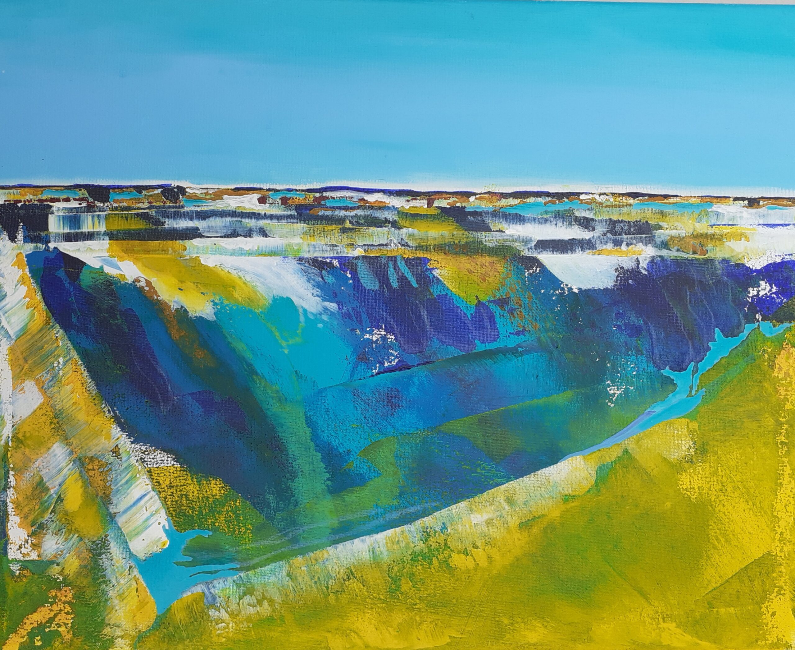 Im Dezember ist Cornelia Martin-Czuia mit ihrer Ausstellung „Blau und Grün“ zu Gast im Kunstfenster am Rathausplatz. Dazu schreibt sie: