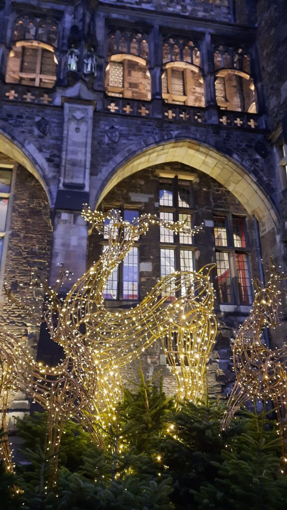 Auch andere Städte lockten mit Weihnachtsmärkten. Der HVV hatte sich in diesem Jahr für Aachen entschieden und bot eine Busfahrt an. Zuerst stoppten wir am Werksverkauf von Lindt. Ein überwältigendes Angebot an Schokoladen, Nikoläusen, Pralinen und anderen Leckereien erwartete uns und wir hatten Zeit, einiges für die Weihnachtsteller zu besorgen. Danach widmeten wir uns dem Weihnachtsmarkt rund um den Kaiserdom. Die wunderschön geschmückten und beleuchten Stände hatten alles, was das Herz begehrt, Gebasteltes, Schmuck und allerlei Feines zu Probieren. Es wurden nicht nur Aachener Printen in allen Geschmacksrichtungen und Größen angeboten, es gab französisches Nougat und allerlei französische Würste, Plätzchen, Gegrilltes und Gebratenes und natürlich viele gute Getränke! Mittendrin der herrliche Aachener Dom, der ein wenig zum Ausruhen und Besinnen einlud. Das Rathaus hatte seine Tore geöffnet, die schönen Häuser rund um das Rathaus und den Dom waren angestrahlt und bildeten eine sehenswerte Kulisse. Voll bepackt ging es zurück nach Kettwig – es war ein schöner Tag!