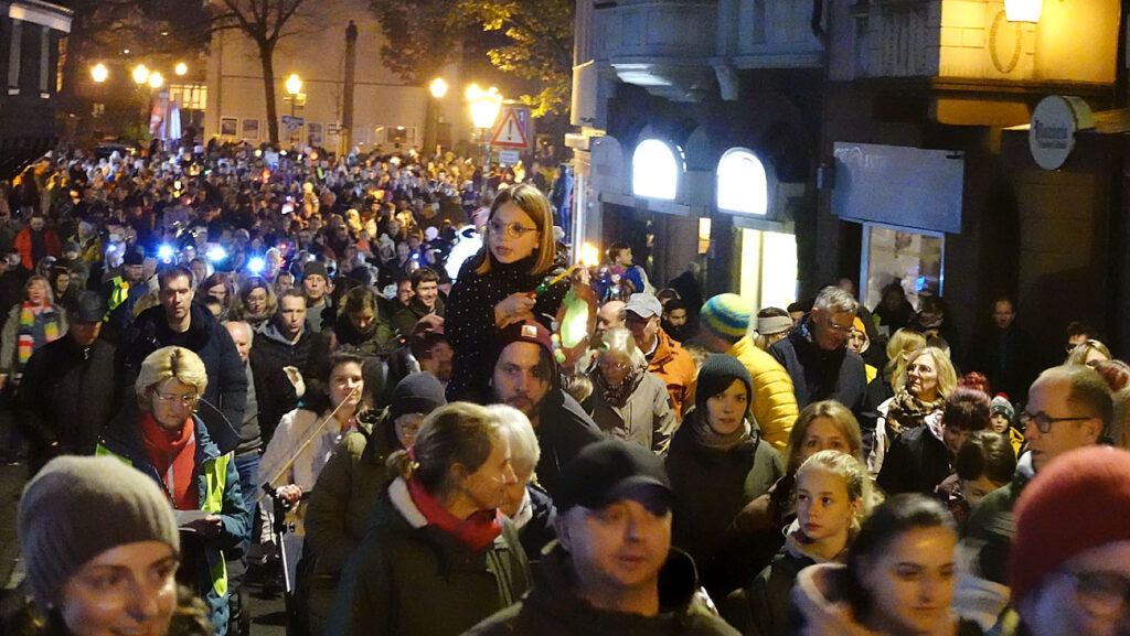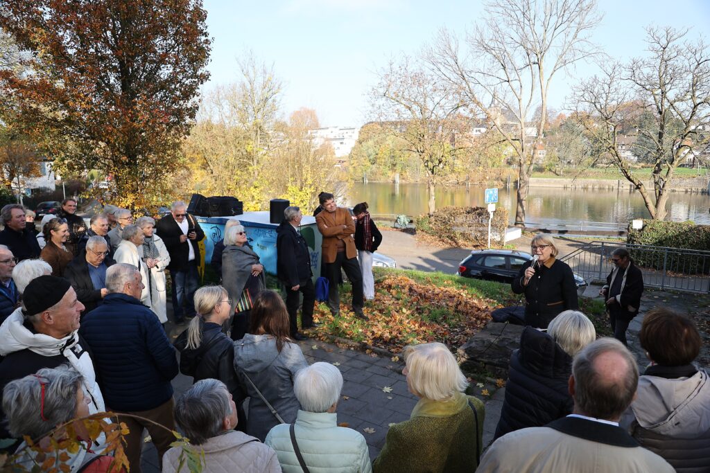Am 8. November kamen zahlreiche Besucherinnen und Besucher zum südlichen Brückenkopf, um die feierliche Enthüllung und Illumination mitzuerleben. Oberbürgermeister Thomas Kufen und Bezirksbürgermeisterin Gabriele Kipphardt eröffneten die Veranstaltung mit einem symbolischen Banddurchschnitt.