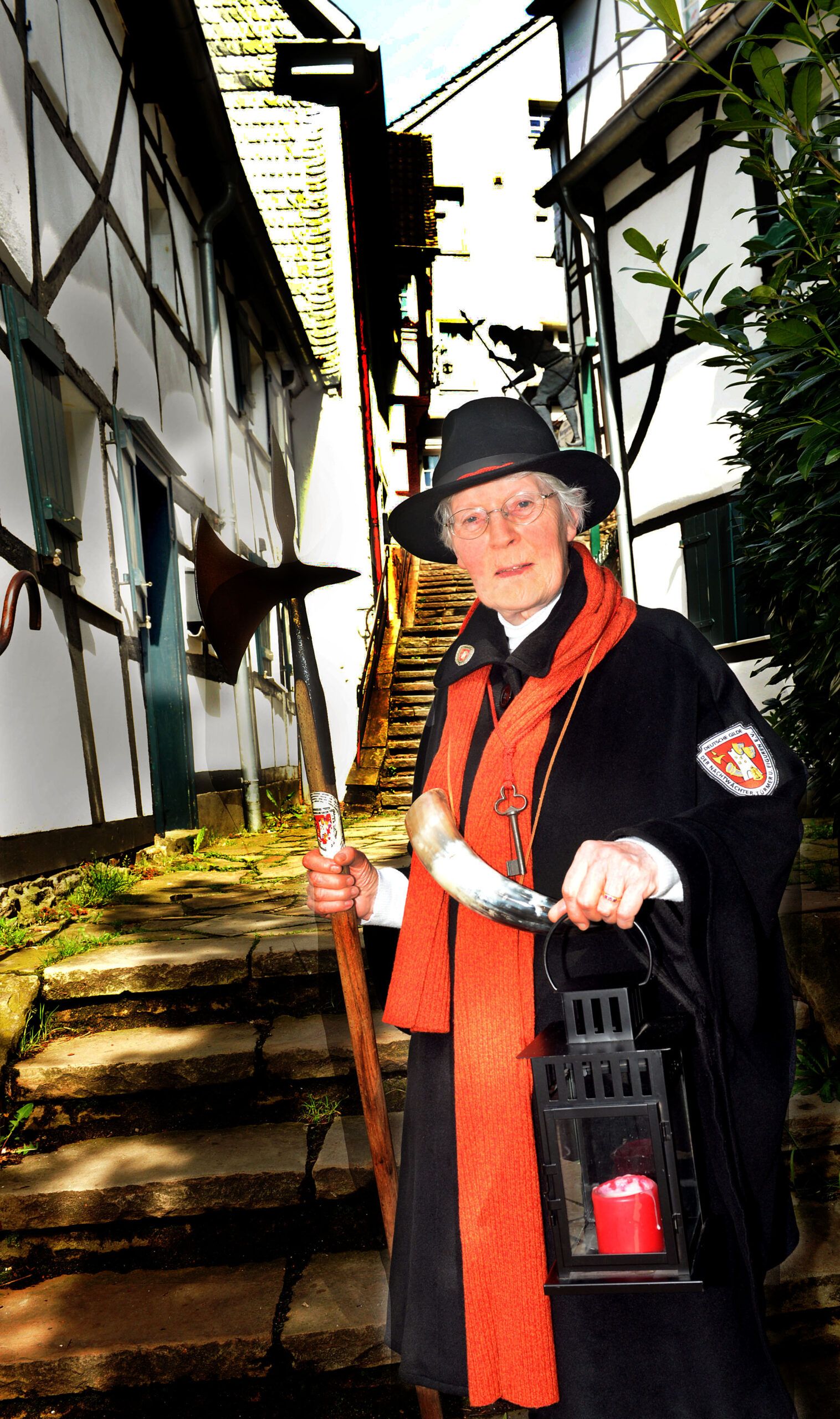 In der vorweihnachtlich geschmückten Kettwiger Altstadt stapft die Nachtwächterin des HVV Gunild Scheid in ihrer typischen Nachtwächterkluft mit Hut, Mantel, Hellebarde und Leuchte durch Kettwigs Gassen und Winkel. Sie erzählt bei dem knapp zweistündigen Rundgang Geschichten aus dem alten Kettwig. Sie sind herzlich eingeladen.