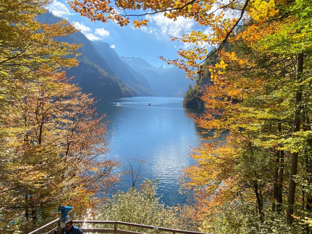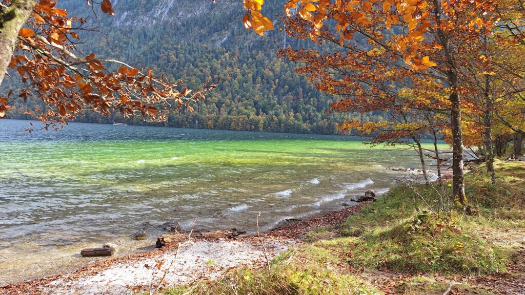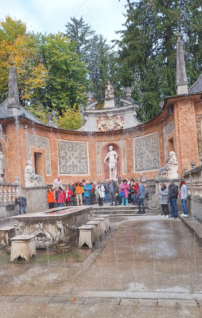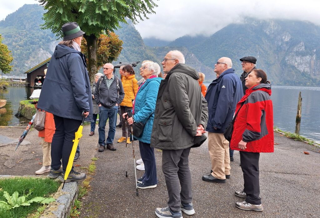 Denkt man an das Salzkammergut, denkt man an eine herrliche Bergwelt, Sonne, bunte Herbstblätter, grüne Wiesen, auf denen Kühe und Gämsen grasen und an viele schöne Seen und vielleicht sogar an das fröhliche gleichnamige Operettenlied. Und genau das waren die Dinge, die die Teilnehmer einer Busreise ins Salzkammergut mit dem HVV gesehen und erlebt haben! Es war eine schöne Fahrt. Unser Hotel lag direkt am Fuschlsee. Das Programm war sehr gut ausgearbeitet. Jeden Tag besuchten wir schön gelegene Orte wie z B. Hallstatt, St. Wolfgang, Salzburg, Berchtesgaden und viele andere. Nicht zu vergessen das kleine Lustschloss Hellbrunn, wo im Park aus vielen nicht zu sehenden Düsen plötzlich Wasser spritzte. Eine Belustigung für und von Fürsterzbischof Markus Sittikus, denn die feinen Kleider der geladenen Damen und Herren wurden ordentlich nass! Wir wurden zum Glück gewarnt und somit (fast) verschont, konnten uns aber gut vorstellen, wie es damals war. Die Technik war eine geniale Leistung, denn noch nach 400 Jahren funktioniert die Mechanik einwandfrei. – Wir fuhren mit dem Schiff nach St. Bartholomä am Königssee, der Watzmann blickte wolkenlos auf uns herunter, im Laufe des nachmittags zogen wieder Wolken auf, aber es blieb trocken und sonnig.- In der Gmundener Keramik Manufaktur wurde uns das dort praktizierte traditionelle Handwerk erklärt. Zwei Damen unserer Gruppe nutzten sogar die Möglichkeit, selbst einen Teller mit dem typischen Muster zu bemalen. Dass es viel schwerer ist als es aussieht, konnten sie bestätigen. Leider durften sie die Teller nicht mitnehmen. – Es waren tolle 8 Tage in herrlicher Umgebung, mit Spaziergängen, Besichtigungen und Schifffahrten. Wir freuen uns auf die nächste gemeinsame Fahrt!