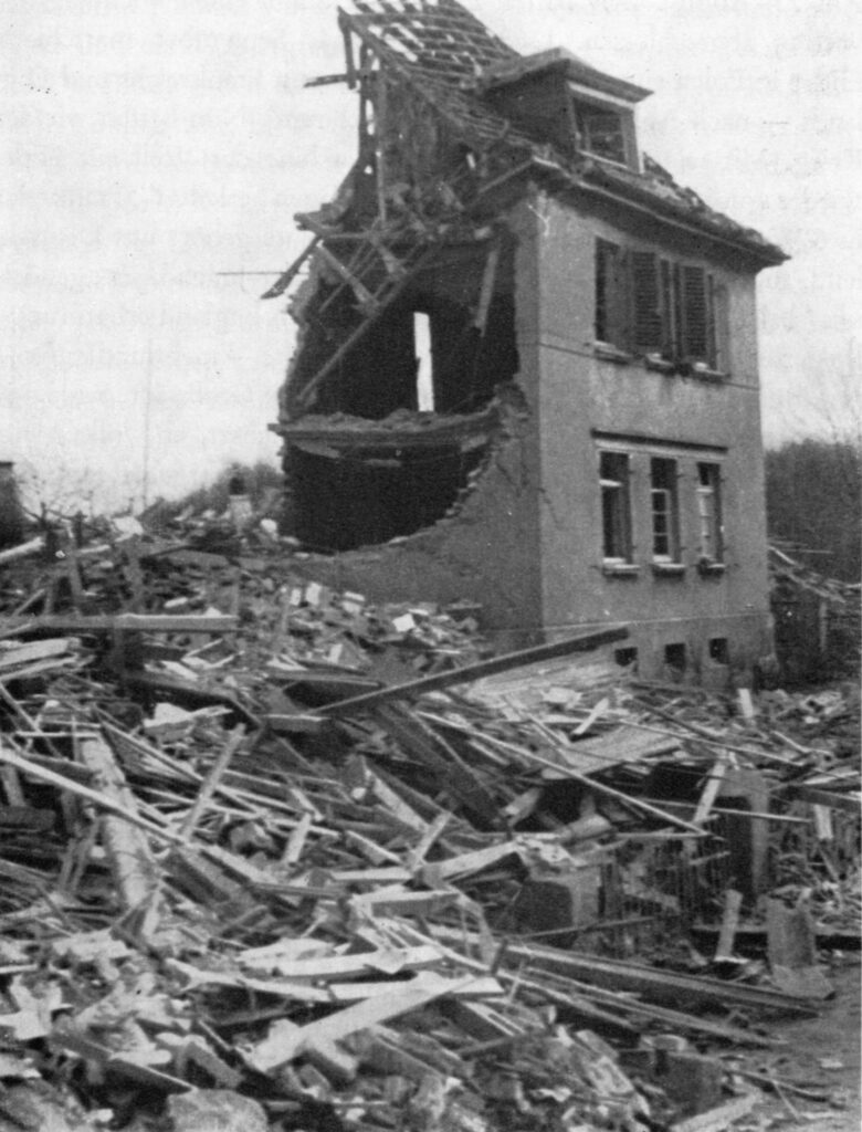 Das Haus im Kimpel 9 nach dem Bombentreffer.Die Eisenbahnbrücke wurde von den deutschen Truppen auf dem Rückzug aufgrund von Hitlers Nero-Befehl („verbrannte Erde“) gesprengt.Die Pestalozzischule stand damals auf dem Gelände des heutigen Theodor-Heuss-Gymnasiums.Familie Killmann vor dem Sommerhaus, Peter rechts. Peter A. Killmann heute.Das Buch erscheint im Hummelshain Verlag