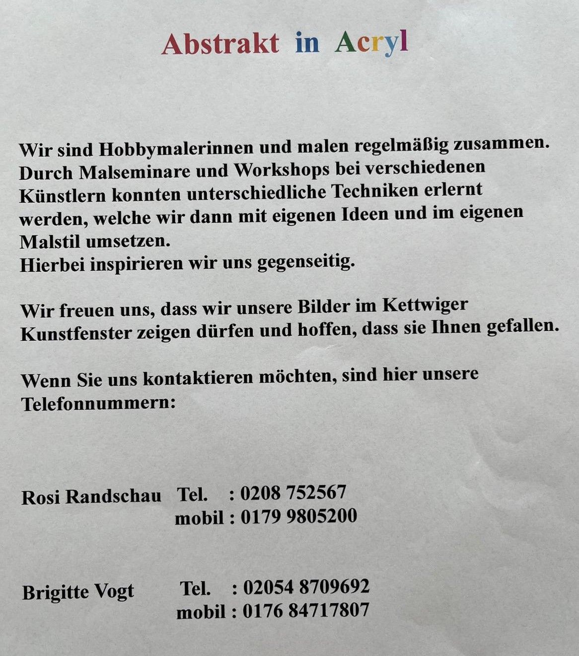 Das Kunstfenster des Heimat-und Verkehrsvereins Kettwig e.V. bietet Künstlerinnen und Künstlern aus Kettwig und Umgebung die Möglichkeit, etwas von ihrem Schaffen, seien es Bilder, Zeichnungen, Fotos, kleinere Skulpturen o.ä. der Öffentlichkeit zu präsentieren. Die Ausstellungen wechseln monatlich. Das Kunstfenster befindet sich am Rathausplatz, neben dem Eingang.